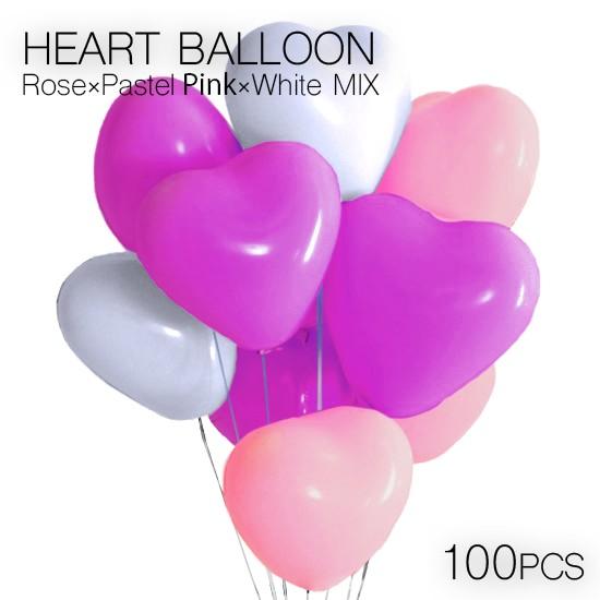 ハートバルーン ピンク パープル ホワイト デコレーション風船 100個セット ジョイントプレート Hクリップ 粘着シール 白リボン 豪華オプション付 誕生日 飾り付け おしゃれ ぺたんこ配送 Fta105 幸せを運ぶ風船shopフロンティアバルーン